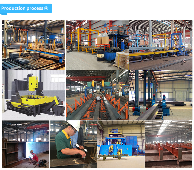 | Material: Hot rolled material, Pre Engineering Built Up section H beam, box section columns H section steel,finishing with two times alkyd/epoxy zinc-rich primary coating / hot dipped galvanzied | ||