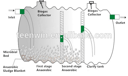 See the diagram of the single anaerobic system as below for domestic polluted water treatment plant