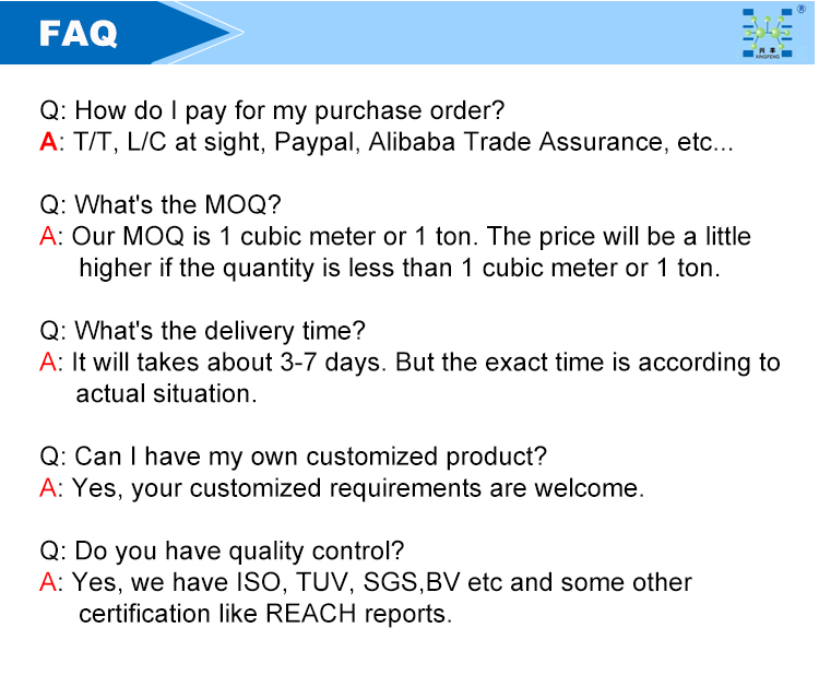 Plastic bag of 0.1m3 | 28m3 | 58m3 | 68m3 | Within 3-10 days | Chinese National Standard; Offer quality assurance as request. | T/T, L/C, Paypal, West Union, Alibaba Trade Assurance |