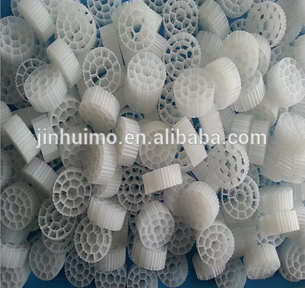 3) Large specific surface area and strong impact resistance.HDPE Bio-filter media made by special processing technology with peculiar ring structure design,to make it large_specific surface area and strong impact resistance.