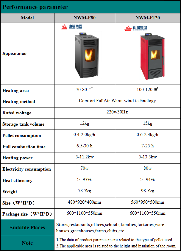 The technology of warm air fireplace originated from the pellet fireplace in Europe and America,mainly uses biomass pellet from pine as fuel.Warm air fireplace adopts the blow wind type heat circulation heating, at present there are F80 F120 two models, can supply the biggest room of about 80 m2 or 120m2 respectively ,the design service life is more than 10 years. The warm air fireplace is compact, easy to move, easy to install, easy to use and durable.The heating effect is stable and good, the use cost is cheap and affordable, the use process is ECO-friendly and low-carbon, safe and convenient.Its combustion efficiency is high, more than 90%.