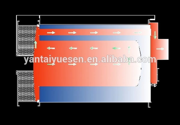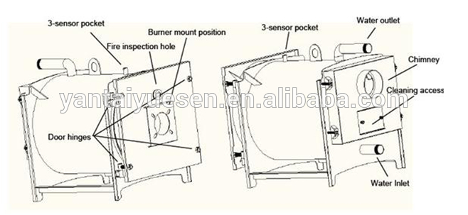 - Improved three pass design. Unlike the traditional three past designs, our boiler with the special radian of the conbustion chamber, make the second pass of the flame still flow at the chamber(the heat exchanger),and thus ensure the full combustion of the fuel.