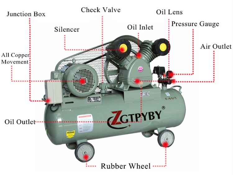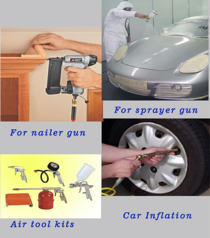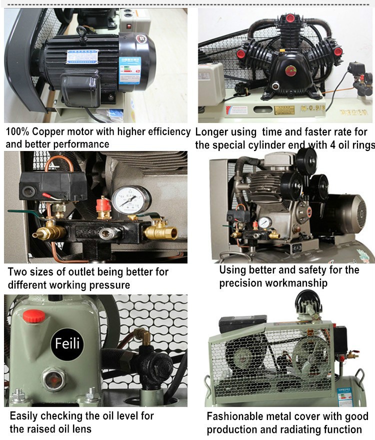 Air compressor is widely used in air wrench, air screw, medical dental, air inflation, car wash, paint spraying and son on. The features are as follow: