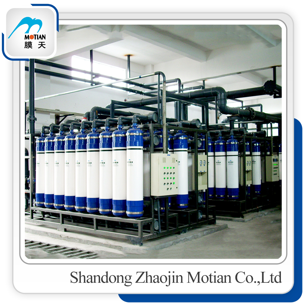 1. Ultrafiltration system has filter fineness higher than traditional filtration equipment. It can completely remove all the colloids and particles and reduce the SDI value of raw water. The permeate water can meet the feed water condition for reverse osmosis system.