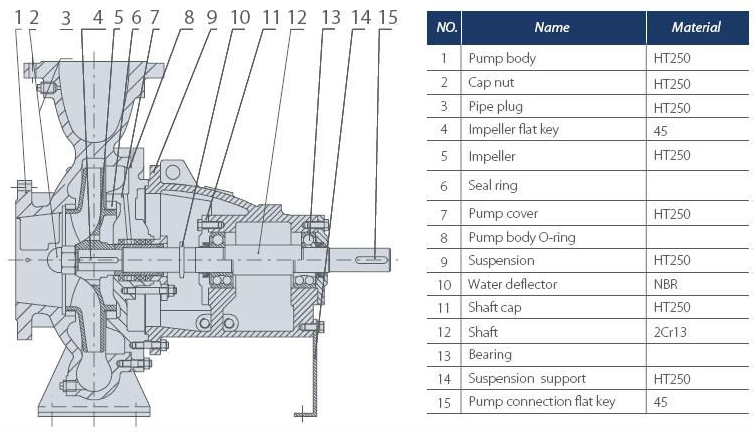 1. The GHS series single-stage single-suction horizontal centrifugal pump is designed in accordance with EN733(DIN24255).