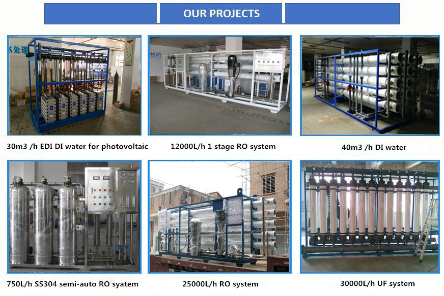 7. RO system--RO system is the heart part of pure water plant. The RO systems are capable of removing over 99% of ions, bacteria, particles and 98% of organics and silica, 85 % of B. simply operation and life span.