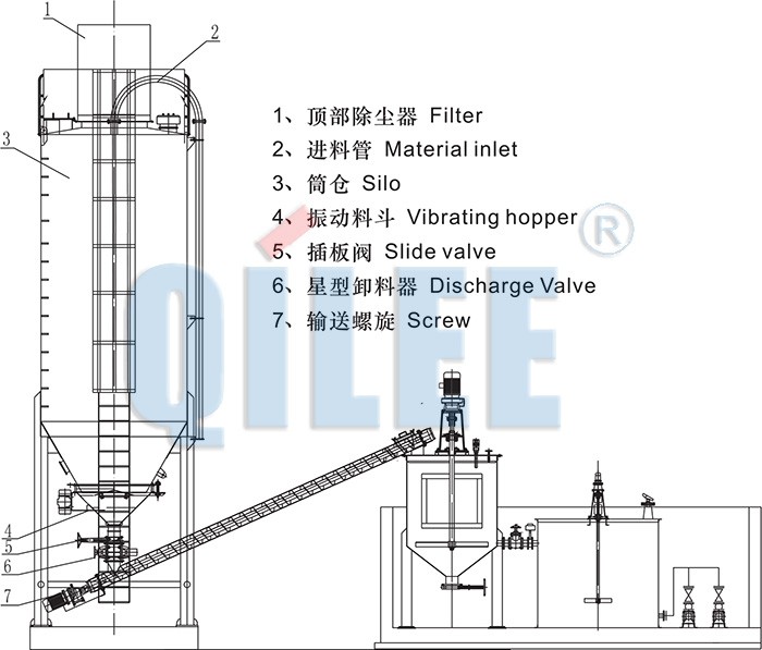 | Specification | Silo | Screw | Dissolving tank | Total powder | Floor area |