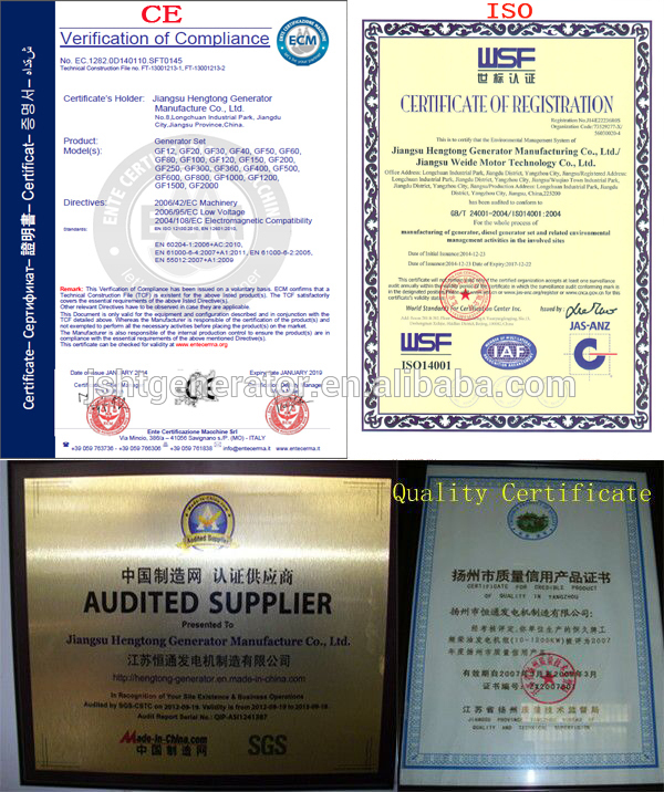 We pass CE,ISO,CQC certificate. genset power range: 25-2000kva, alternator power range: 6.5-1760kw.