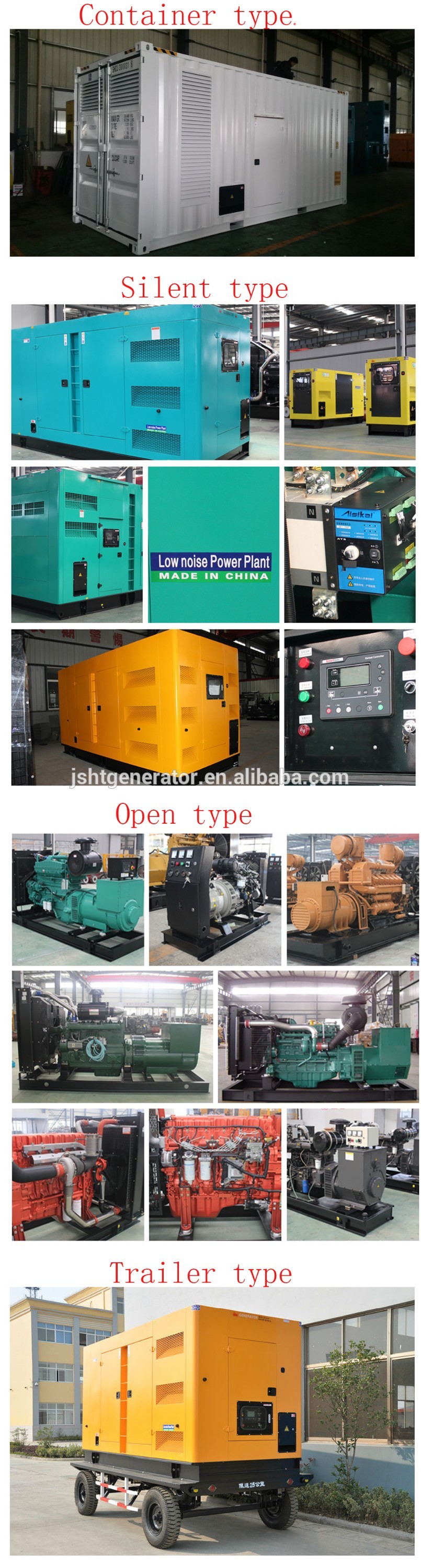 Our factory Have NENJO, Volvo, Deutz, daewoo, Shangchai, Weichai, Jichai etc World and Chinese famous brand generator set, and silent/low noise/sound-proof, mobile/ trailer generators. We have our own produced high quality 3 phase brushless alternators.