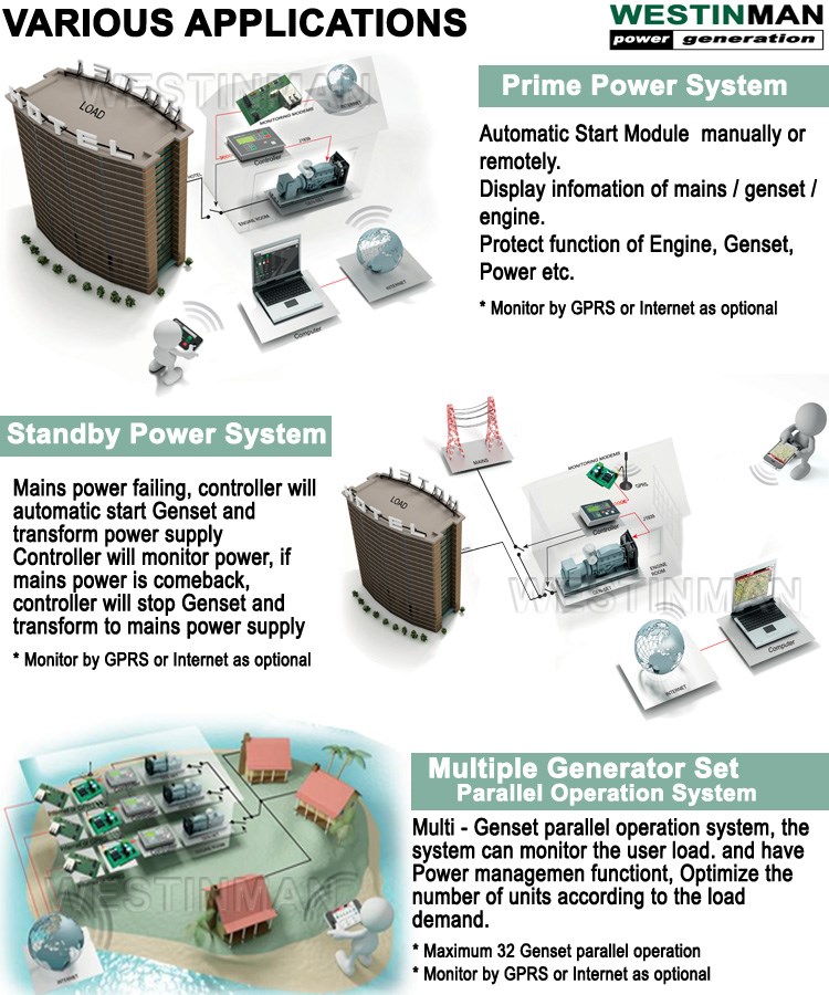 4. Equipped with advanced generator set control system, ATS system, remote control system, parallel operation system, optional control model, Deep sea, Smartgen , ComAp ,
