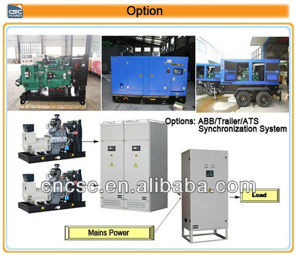 | Lub oil preheater | Anti-condensation heater | Synchronization panel | Automatic fuel pump | Weatherproof canopy |