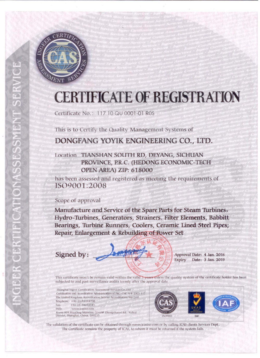 Dongfang YOYIK Engineering Co.,Ltd, (YOYIK) was established in 2000 and specialized in manufacturing spare parts for steam turbines, hydraulic turbines, turbine generators, hydraulic generators, boilers. We are the agent for Nugent, Hilco Hilliard, Sauer Danfoss, Titeseal, Eaton, 707. Business scope is not limited to Dongfang units, including many products for Harbin steam turbine (HTC), Harbin electric machine factory Co., Ltd (HEC), STC, SEC, Chengdu Power Machinery Works (CPMW), Shanghai Power Equipment Manufacture Co.,Ltd (SPEM), Shenyang Stock etc.