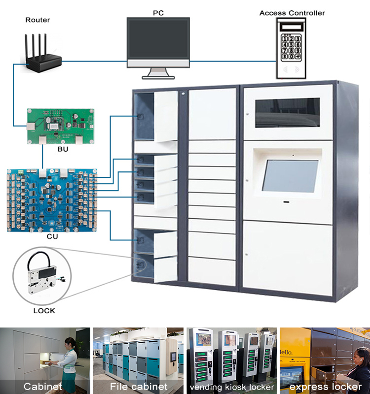 Locker Control Board is widely applicated in Cabinets, mailbox, drawers, lockers, deposit lockers, logistics cabinets/lockers, express lockers, parcel lockers, gym lockers, sauna lockers, wardrobe lockers, document cabinets,wardrobes, vending kiosk locker, phone charging cabinets, shoe cabinets,centralized control box ark, etc.