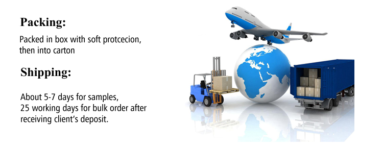 A:After you pay the sample charge and send us confirmed files, the samples will be ready for delivery within 3-7 days. The samples will be sent to you via express and arrive within 3-5 business days. You can use your own express account or prepay us if you do not have one.