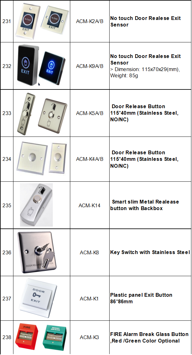Also we provide EM lock, em magnetic stripe lock, drop bolt lock, exit button , power supply, door release button, access control board, etc