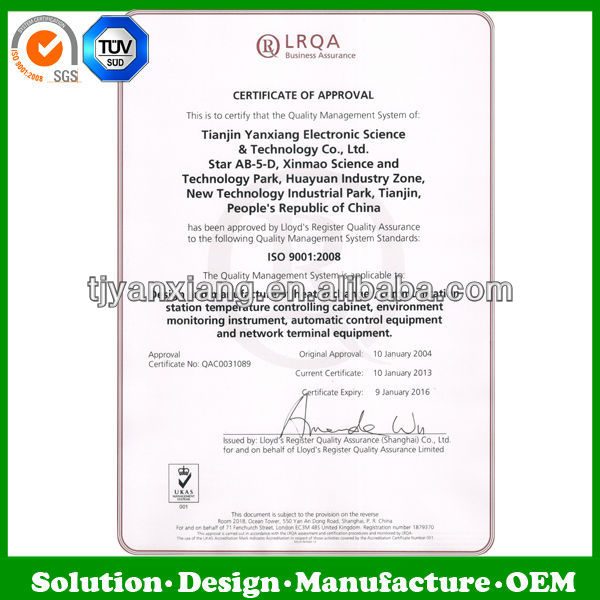 The company passed the ISO9001 International Quality System Certification in 2004 January.