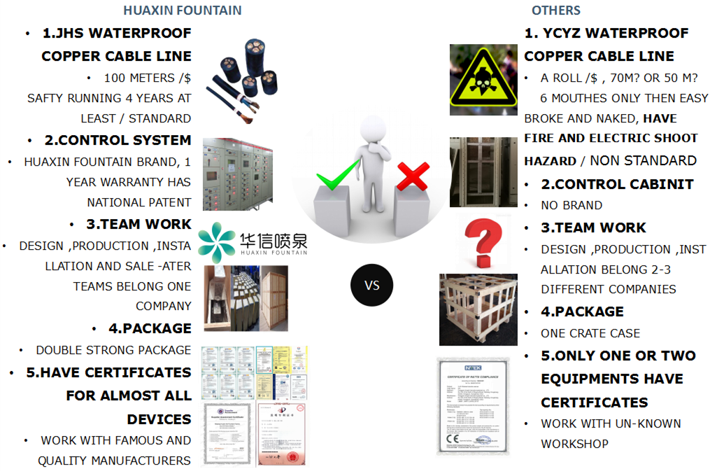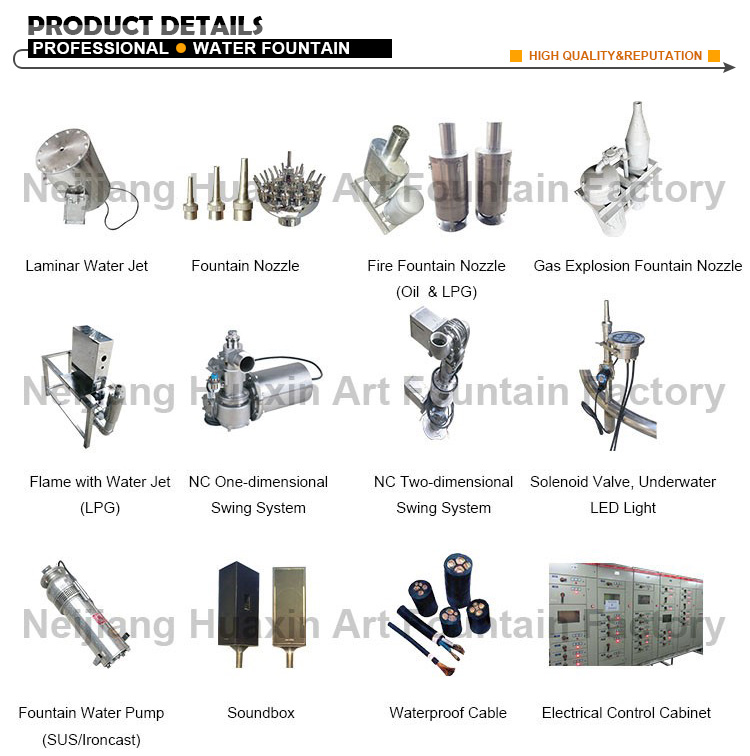 3. Different raw material fountain equipment such as water fountain pump, underwater power cable,musical fountain controller cabinet ,for selection to meet your budget and requirement