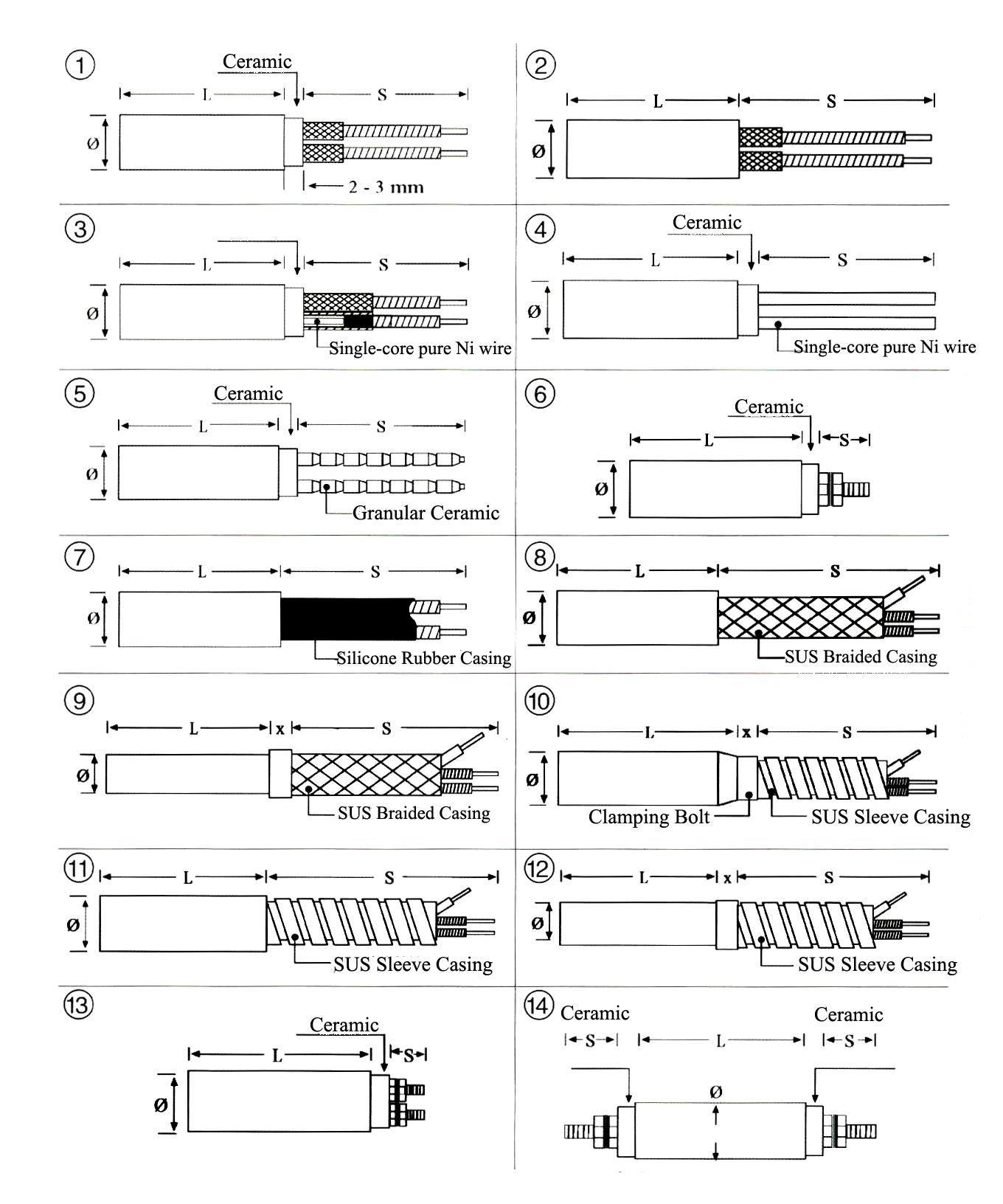 Cartridge heater are cylindrical electrical heating element.Mostly used for heating up solids such as injection presses heating plates or various tools,they can also be used for heating up water of gases under certain conditions.Widely used for manufacturing plastic and rubber parts in the car industry or in the food processing industry,etc.They are also commonly found in the chemical,electronics,medical equipment,packing and nuclar industries.