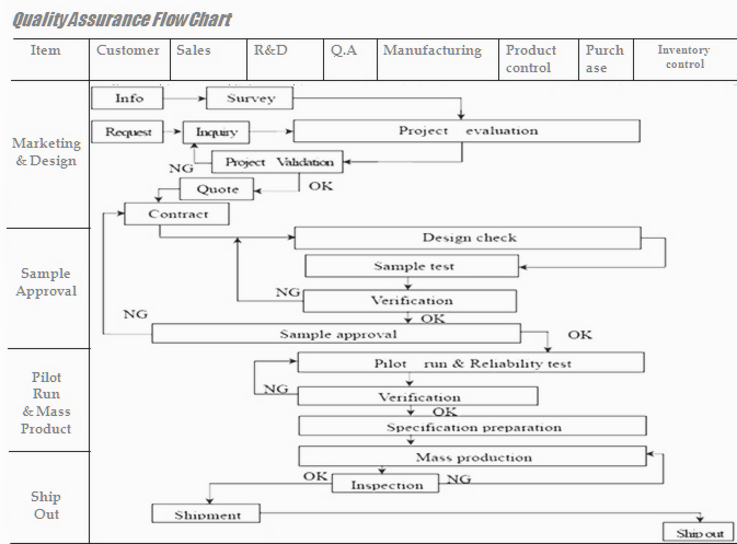 A: We have extremely strict quality control system with goods qualified rate up to 99.6%.Our quality assurance flow chart is as below:
