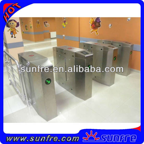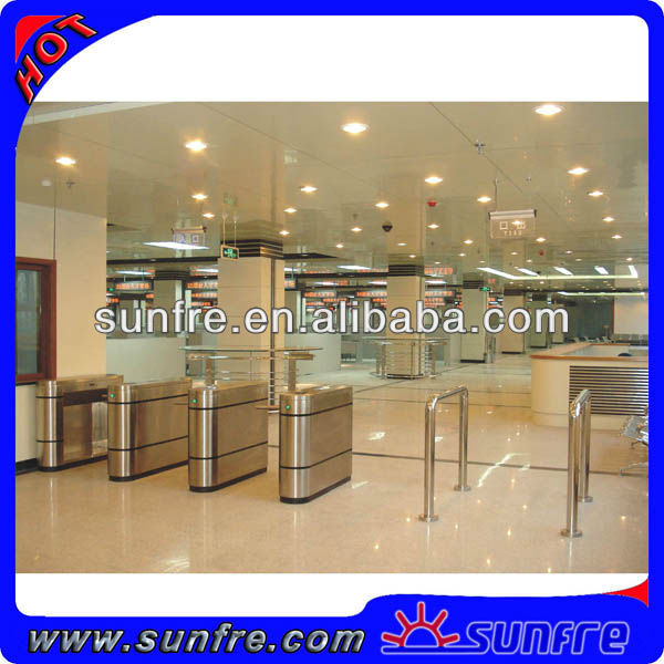 The outline of the product is formed after pressing the stainless steel plate. The shape is featured as a pleasing appearance, a good looking, stainless and durable. The system is provided with a standard electric interface and is easily integrated into the product with read/write facilities. A special control system is equipped in the product to meet the requirement of fire control, so that the smooth passage flow is ensured, realizing a timely diverting of passengers. The product is featured as stable in performance, safe and reliable, and can be used widely in the places where passenger flow is great and monitoring is needed such as stations, harbors and guest house.