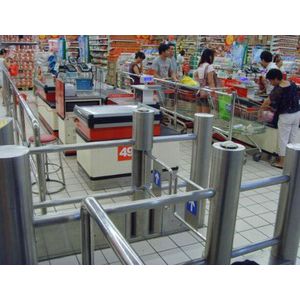 The outline of the product is formed after pressing the stainless steel plate. The shape is featured as a pleasing appearance, a good looking, stainless and durable. The system is provided with a standard electric interface and is easily integrated into the product with read/write facilities. A special control system is equipped in the product to meet the requirement of fire control, so that the smooth passage flow is ensured, realizing a timely diverting of passengers. The product is featured as stable in performance, safe and reliable, and can be used widely in the places where passenger flow is great and monitoring is needed such as stations, harbors and guest house.