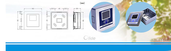 The product can be used for the sensing control of non-contact access control at entrance and exit, such operation is convenient, avoiding hand contact pollution.