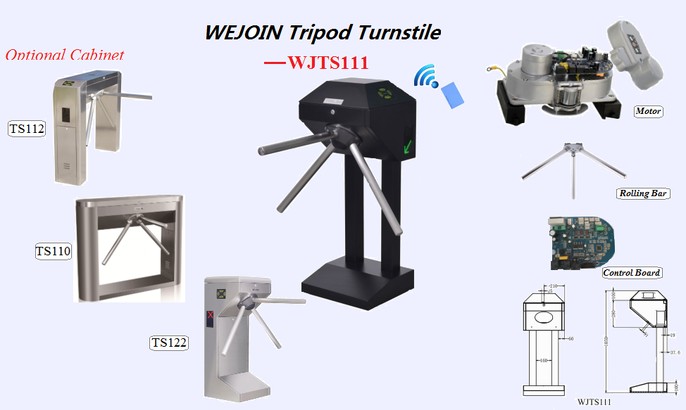 GuangDong WEJOIN Fingerprint RFID Semi-Automatic Access Control System Vertical Tripod Turnstile
