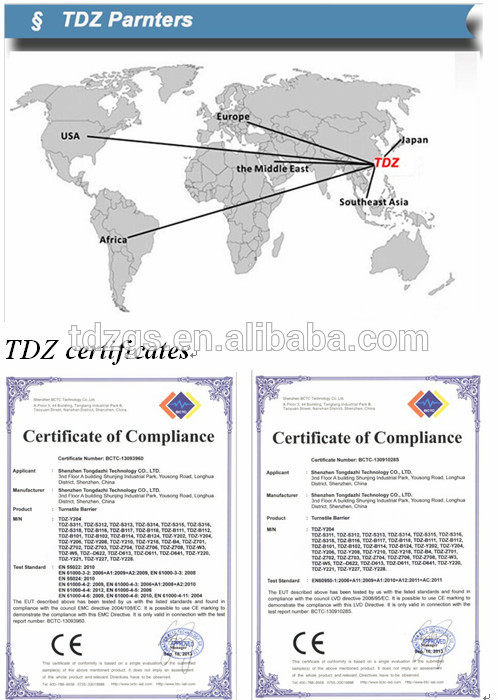 Shenzhen Tongdazhi 's semi-automatic tripod turnstile consists of casing, magnetic force turn plate, reader module, main controller module, direction guide, limit switch etc., can be used for entrance control, applications like apartment, factory, museum, station and ferry terminal etc.. Together with intelligent card reader/writer and management software, they are combined as intelligent tripod turnstile management system, can fulfill the functions like entrance control, time attendance, pedestrian volume control and tolling etc. The equipment opens half-automatically, Mifare-1, IC, ID and available to be used with the tripod turnstile.