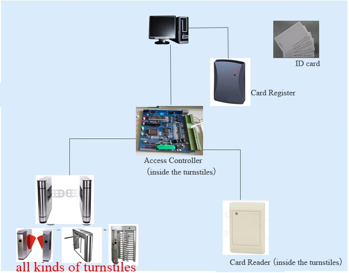 6. Can be used with variety of card readers: IC / ID card readers, bar codes, fingerprints, etc. (Access controller needed)
