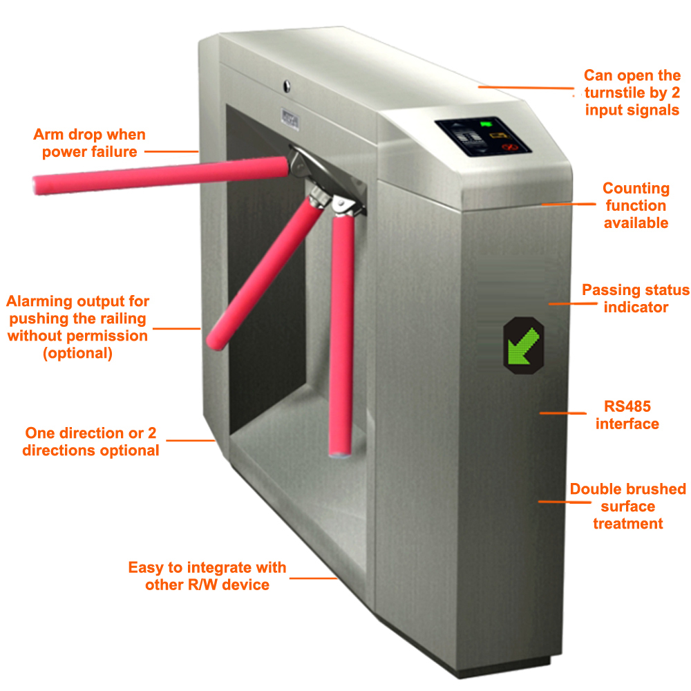 Fujica pedestrian control tripod turnstile, can be easily to integrate with other read/write devices and systems, can fulfill functions like entrance control, time attendance, pedestrian volume control etc. It is widely used for applications like stadium, apartment, gym, museum, station, library and factory etc.