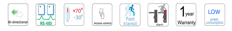 - Equipped with infrared photocell, alarm while unauthorized entry or tailgating attempts, together with anti-strike function to protect pedestrian.