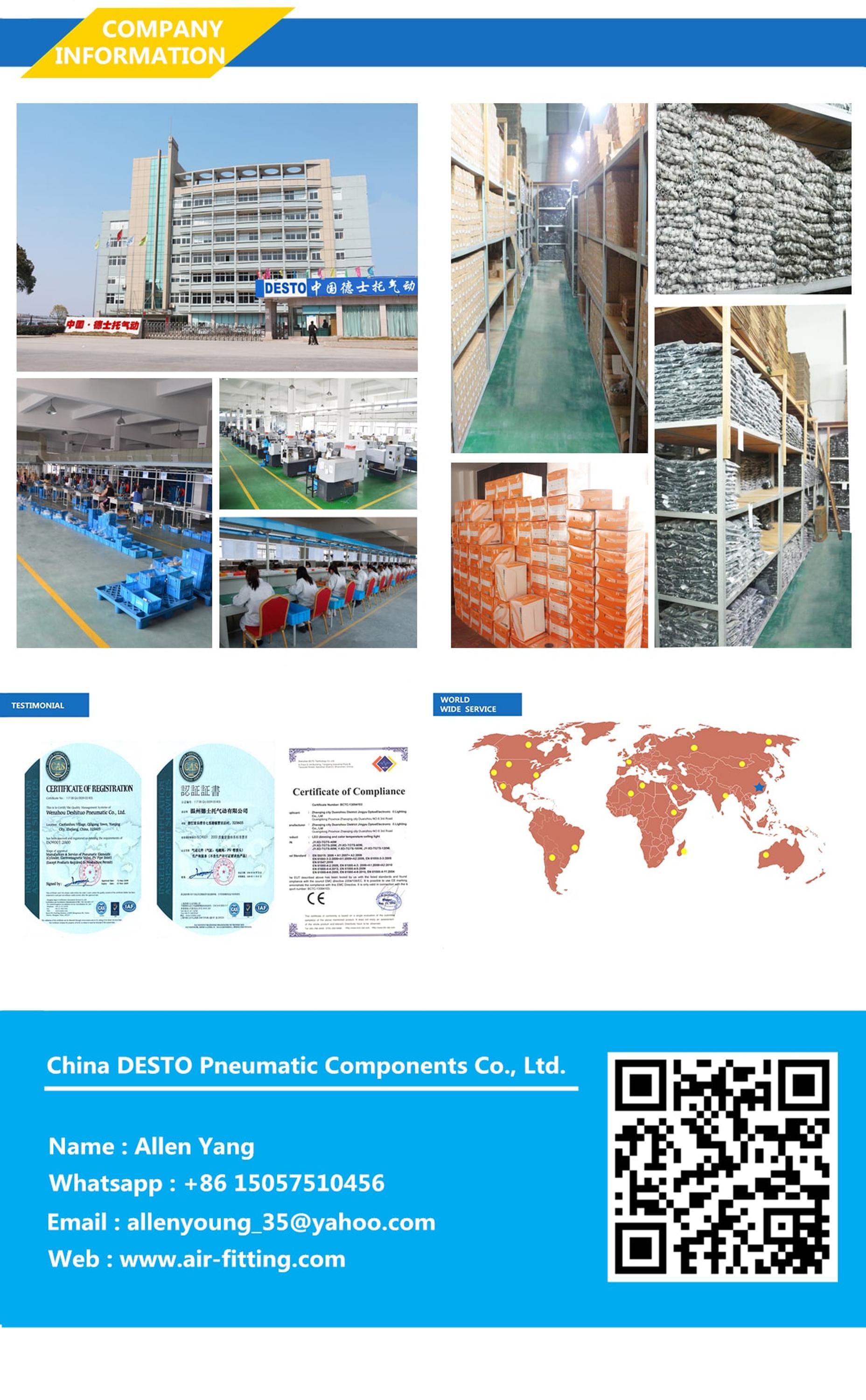We are a professional manufacturer on pneumatic connector and tubing with over 13 years experience on this field. In the civil market , we have over 176 agencies in 176 cities and 30 province. We also supply and OEM/ODM to other local professional cylinder or air equipment manufacturer.