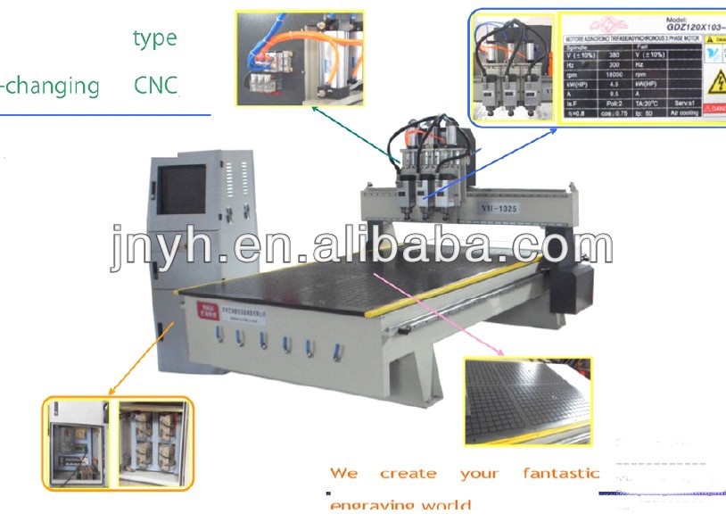 1.Three 4.5KW Air-cooling spindles,heavy Hard Steel Lath Body, keep the machine's working High stability.Whole machine is welded with seamless steel structure,dealing with Time-treatment, the stability is excellent, never to be deformed.