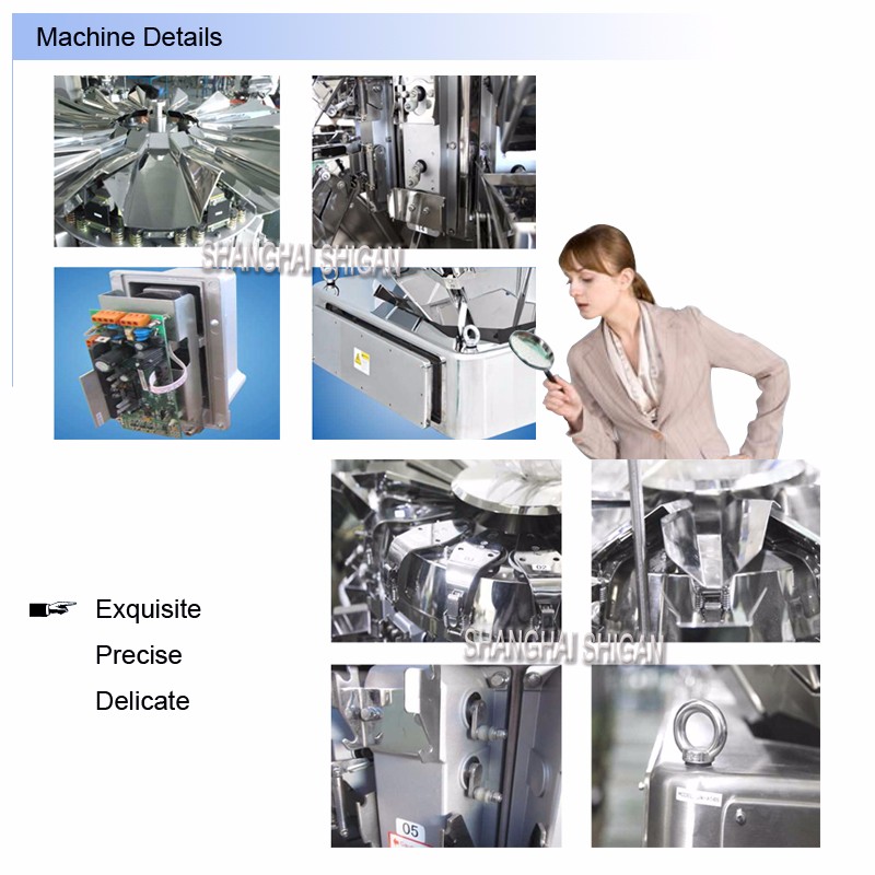 4, System packing speed faster : the materials fall thanks to the double double chute or three, reduces the blanking waiting time, whether the combination weighing or packing machine can reach the highest speed; better high-speed collecting hopper with a special effect;