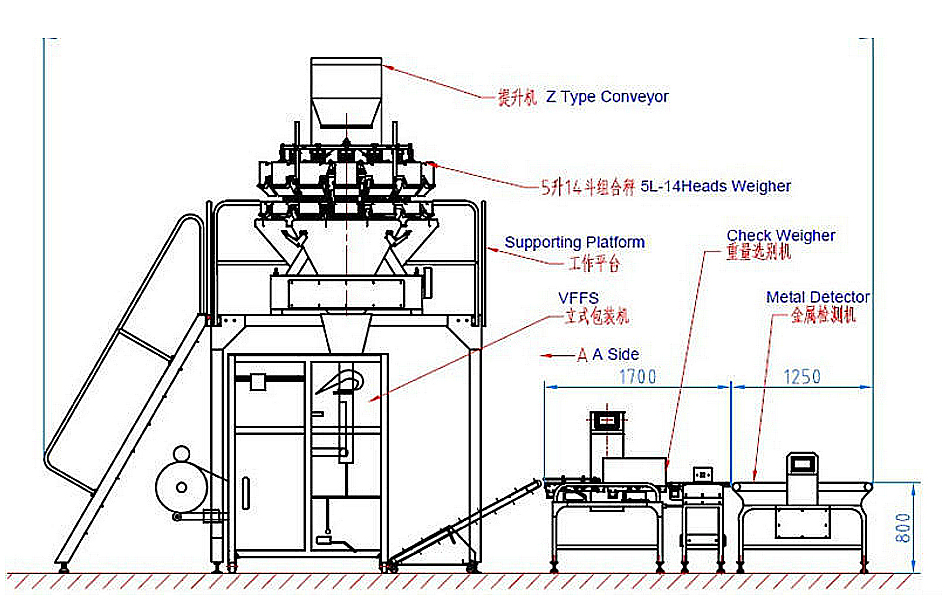 China supplier System packing speed faster multihead weigher combined packing machine drawing:
