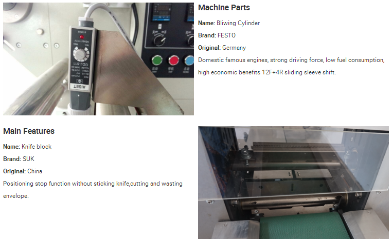 1. Double transducer control, flexible bag length cutting, operator needn't to adjust the unloading working, saving time and saving films.