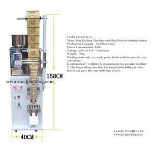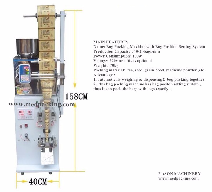 2, this bag packing machine has bag positon setting system , thus it can pack the bags with logo exactly .