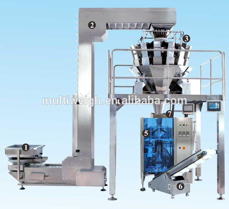 | The units | * Large vertical automatic packaging machine. * Mulithead weigher * Working platform * Z type material conveyer * Vibration feeder * Finished products conveyer+ check weigher |