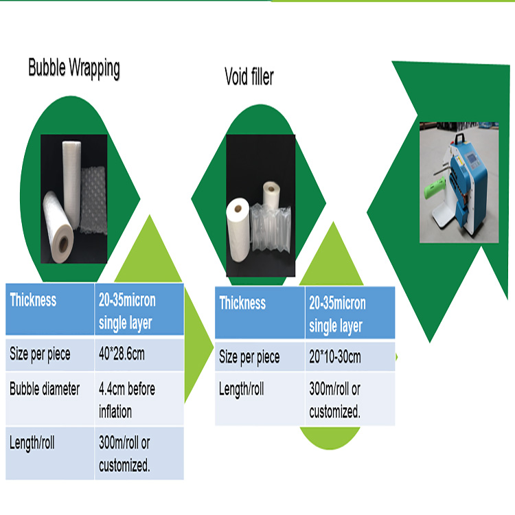 Suitable air cushion film roll: (Filler bag roll & Wrapping film roll)
