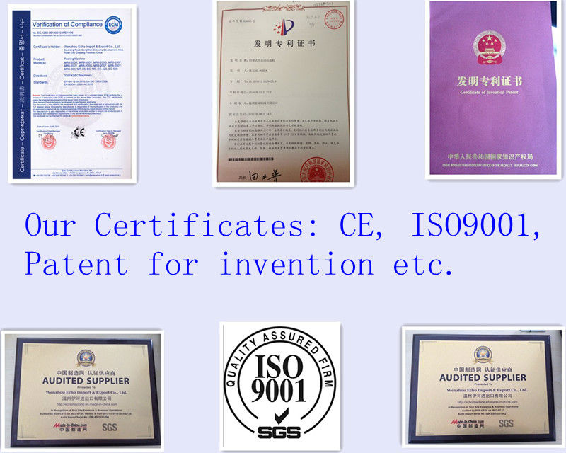Bag type | All type of heat sealable preformed side seal bags, fin seal bags, fin seal bags, gusseted bags,block bottom bags, zip-lock recloseable bags,stand-up pouch with spout pouch, stand-up pouch with zipper pouch, etc |