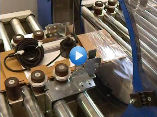 e) Feeding and cutting packing material automatically.