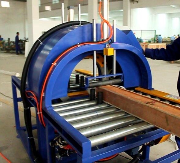This is semiauto orbital stretch film wrapper and orbital packging machine with automatic material cutting and sealing device specialized for packing horizontal objects such as sheets, aluminum profile, doors, Floor board, window, furniture… the wrapped package is well-protected & sealed & looks more tidy. The machine can be connecting to the packing line for automatically wrapping.