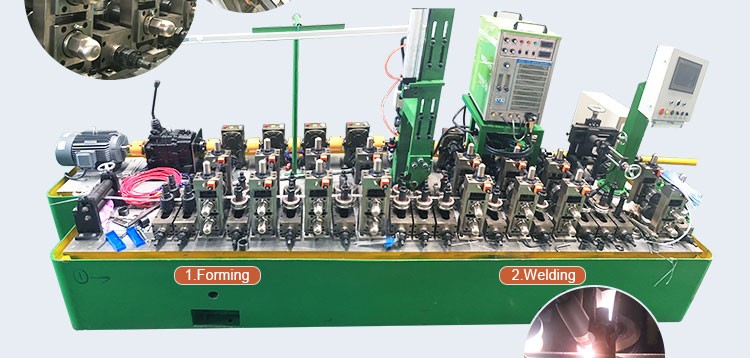 6.Welding Section (Squeezing Roll set 3) + anti-twister(Welder: Tig/Plasma+Tig/Tig+ Plasma+Tig, according to required working thickness & speed) 7.ECT (optional) | ![]() |
