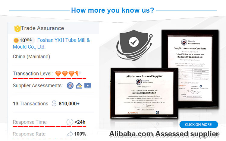 3. The First One Who gets the 3 Diamond transaction level of trade assurance on Alibaba Tube Mill Category