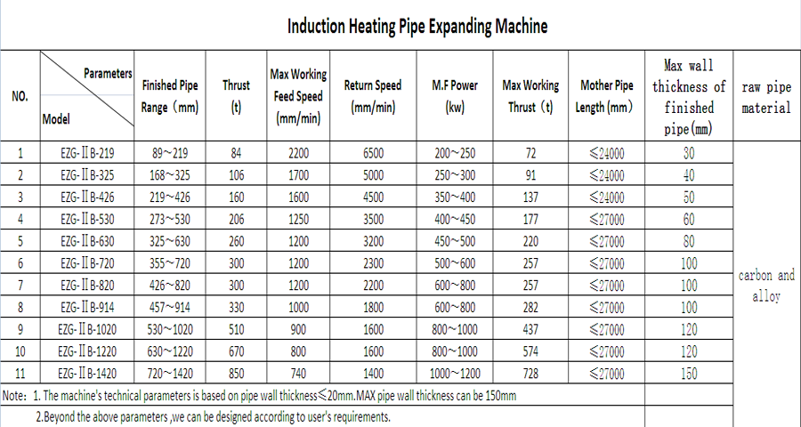 The equipment is used in the diameter expanding production of seamless pipe, straight welded pipe, spiral welded pipe etc. The suitable material for expansion includes: plain carbon steel, kinds of alloy steel and stainless steel.