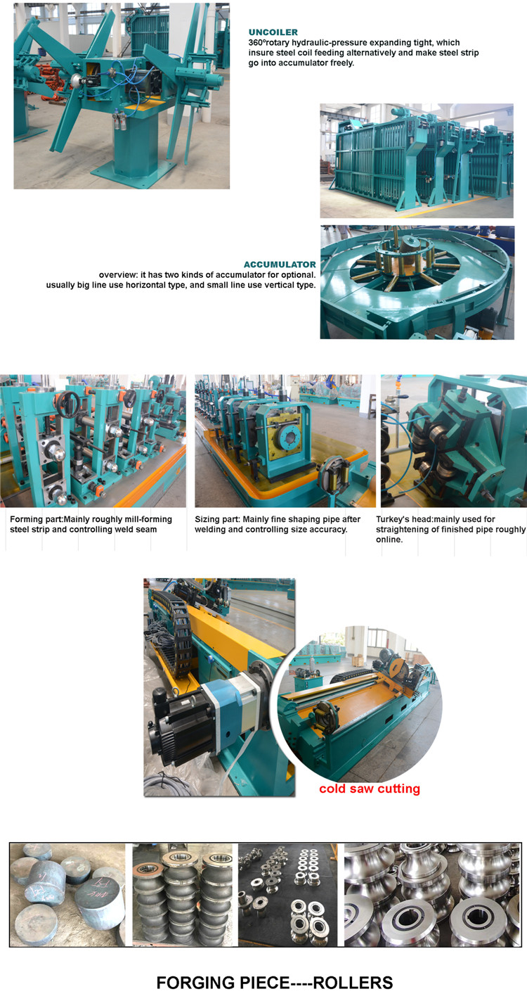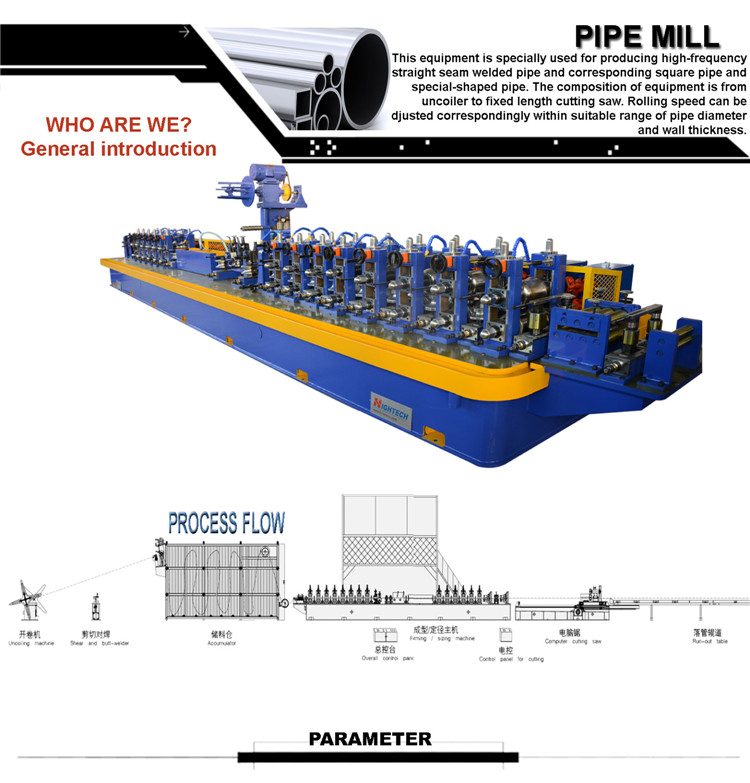 | Model | Diameter of welded tube(mm) | Wall thickness of welded tube(mm) | Speed of tube welding(m/min) | Power of main motor(kw) | High frequency power(kw) |