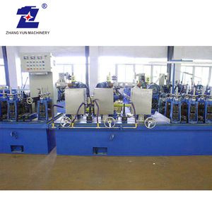 ZY-HF50 Type pipe making production line is specialized equipment to produce high frequency straight seam welded pipe for structural pipe and industrial pipe with Φ20~Φ63.5mm and wall thickness of δ0.8~3.0mm. Through optimization design, best materials choice, and accurately fabrication and rolls, the whole line can be reached high precision and high speed. Within suitable range of pipe diameter and wall thickness, pipe production speed can be adjusted.