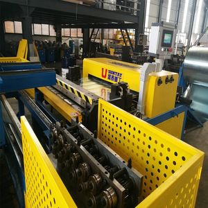 | Basic Configuration | 1. Two electric coil cradles, 4 material trays(5-7tons each roll); 2. One rack; 3. One host(line 3 host); 4. One mechanical arm clutching, locating and transferring platform; 5. One displacement type locking machine; 6. One duplex TDF flange forming machine; 7. One duplex angle steel flange forming machine; 8. One set of computer controlling system. |