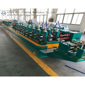 This equipment is specially used for producingΦ19.05-Φ76.2mm, δ0.8-3.0mm high-frequency straight seam welded pipe and corresponding square pipe and special-shaped pipe(δ≤2.5mm). The composition of equipment is from uncoiler to fixed length cutting saw. Rolling speed can be adjusted correspondingly within suitable range of pipe diameter and wall thickness.