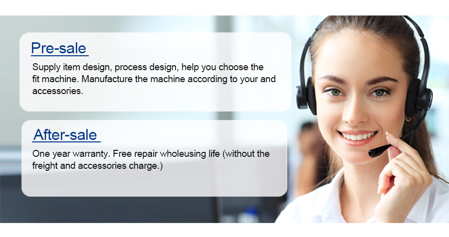 Presale service: Supply item design,process design. Help you chose the fit machine. Manufacture the machine according to your and accessories.